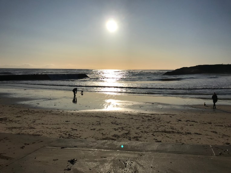 The man with his two dogs says it’s 4 degrees. I ask him, the air or the sea as we grin like school kids on an outing to the seaside.