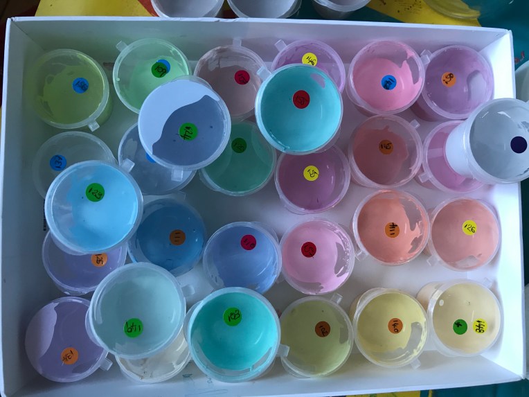 I mixed colours today; went through a 40+ box of acrylic paints, mixing them with white gesso to create new, more muted tones. And I’ll not lie, I was singing to the little paint pots I created. This simple act fed my soul. I was so grateful for colour. I could have stayed there all day just mixing and enjoying the colours that came to fruition.