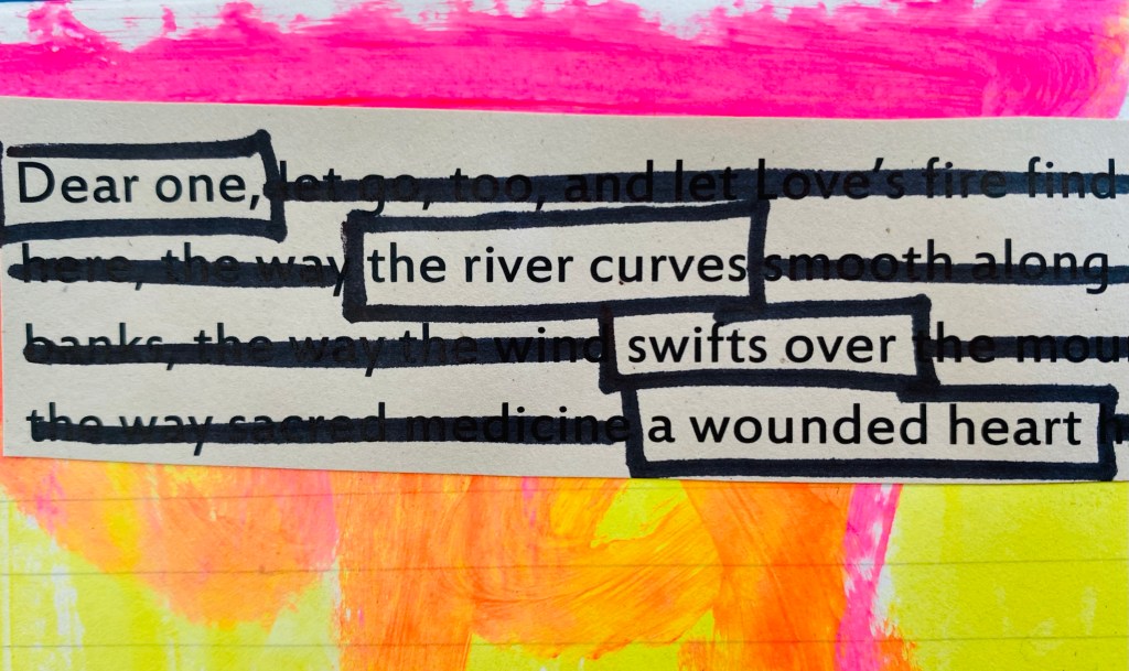 I’ve been enjoying the poetry that you’ve been posting, and the short found black out lines. These four lines have a particular universal poignancy.