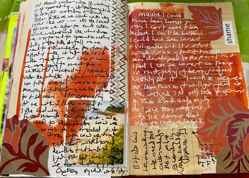 But turning up each day for my visual journaling practice is supporting me to move forward to open the floodgates and to write the damn thing.