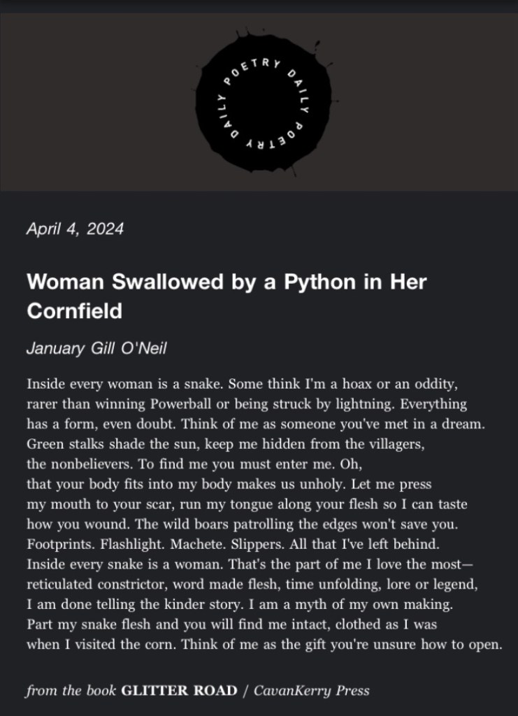 January Gill O’Neill April 7, 2024April 4, 2024 | Sheree Share this: Click to share on X (Opens in new window) X Click to share on Facebook (Opens in new window) Facebook Like Loading...