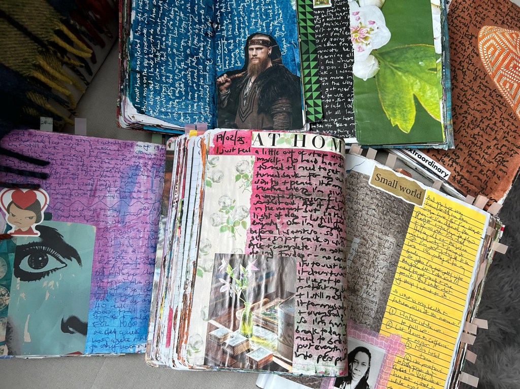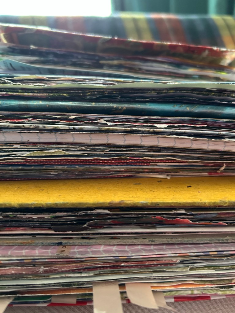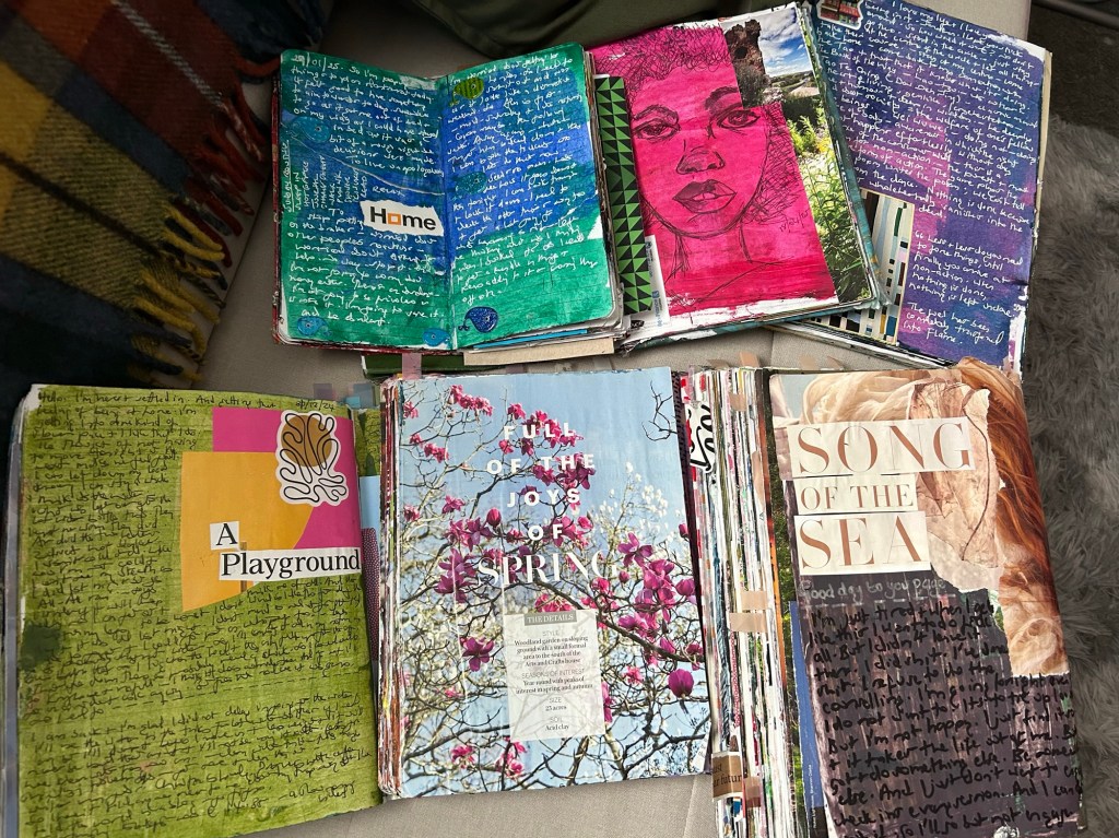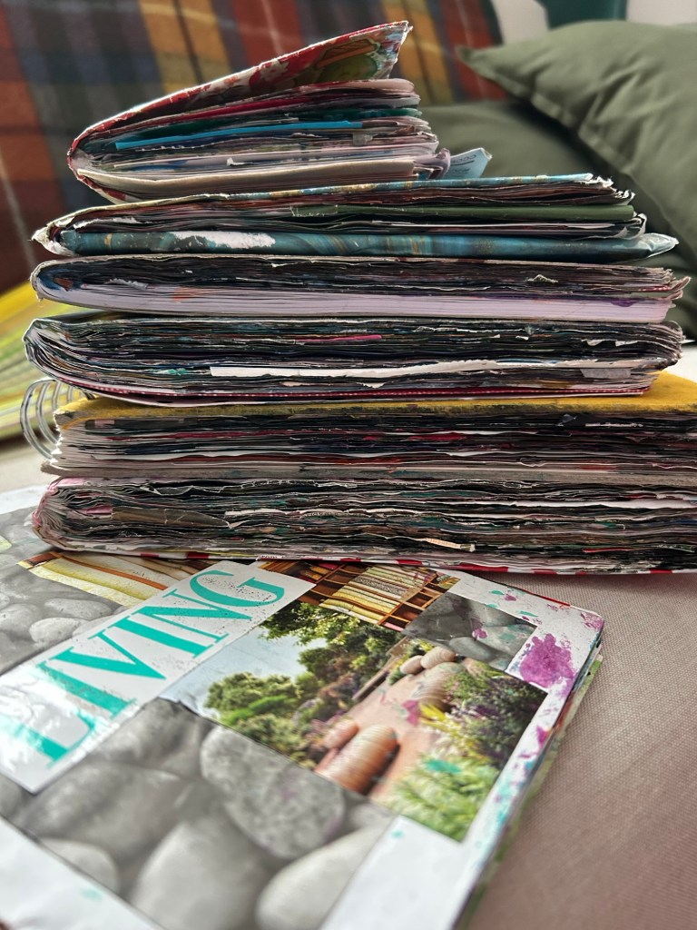 I’m keeping my journals all in one place this year as I attempt to mark how many or how much I create and play and mark each day of 2025. And of course I missed my single week/day handmade journals that I’ve shared here and here. And of course I’ve moved onto another journal since my return from Paris. But this post is a marker.It’s a start in visually representing my visual journaling of 2025.