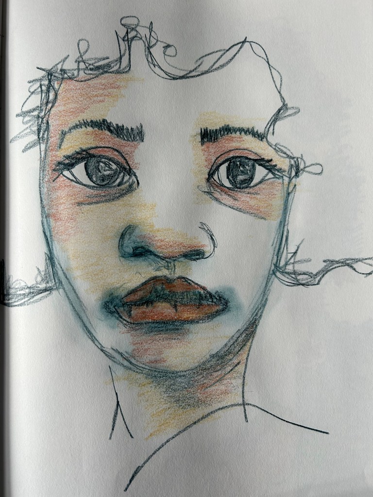 Faces, I love drawing faces. Usually of black women. Seeing myself reflected.