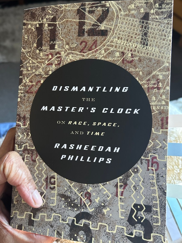 Yes that kind of reading and knowledge. That kind of book. Well that’s what I feel Dismantling The Master’s Clock: on race, space and time by Rasheedah Phillips will do to/for me.