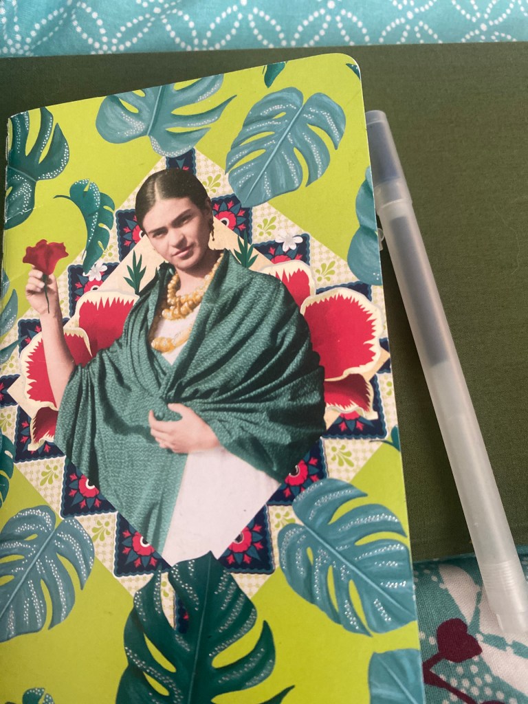 I keep this little notebook with the image of Frida Kahlo on my bedside table. I love this little notebook. I love Frida Kahlo but I also love how I feel when I write in this book. I feel better. I feel present. I feel grateful for what I have, how I feel, what I experience. Fostering positive energy for the here and now rather than energy wasted on what I don’t have or want instead.