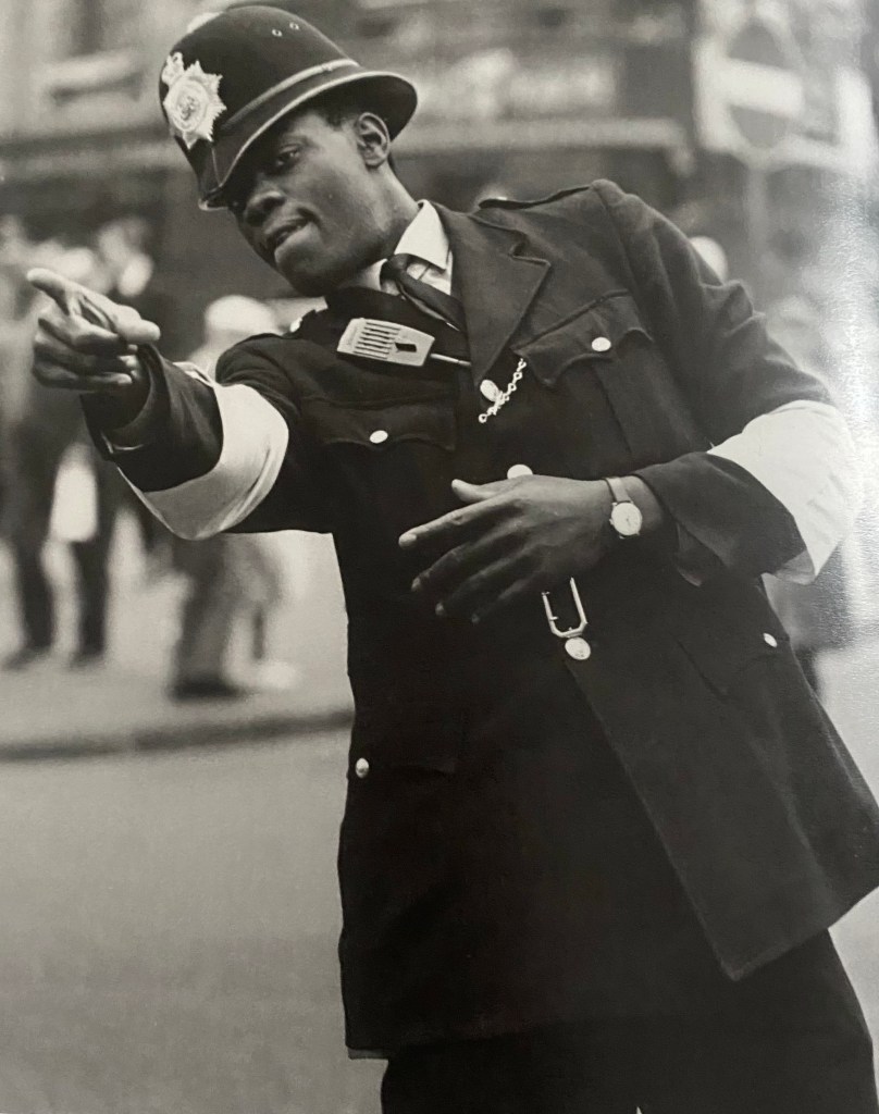 My mother says to rub vaseline into my neck and the collar, to stop the rub; soften the wool. They say make sure you wear the white bands on your arms, otherwise they’ll only see ya teeth in the dark. Only good enough to direct traffic, they roar with laughter. Brillo pad hair. Toilet set lips. I say nothing. I recognise the privilege to wear serve Queen and country.