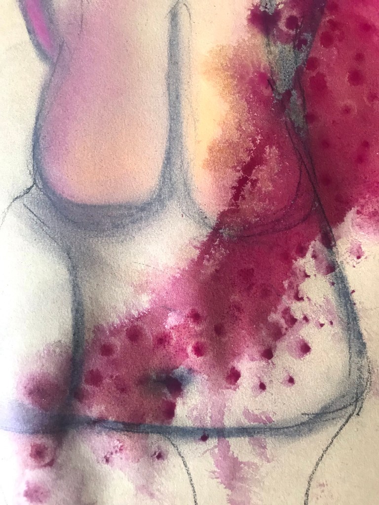 Then I cut myself some slack and said to myself, you don’t have to get the paints out, just pick up a pencil or pen and draw something. So I did. And after the pencils came the charcoal and then the chalks and oil pastels and ink. Each stroke of line moved onto another and another medium to pick up and use. And before I knew it I’d created a body; a black woman’s body.