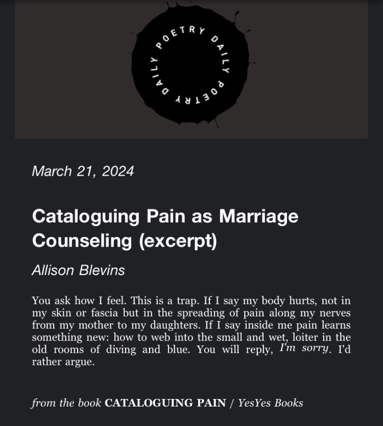This was quickly followed with the writings and (re)drafts of Darkling, my poetry/hybrid collection published in October 2024.