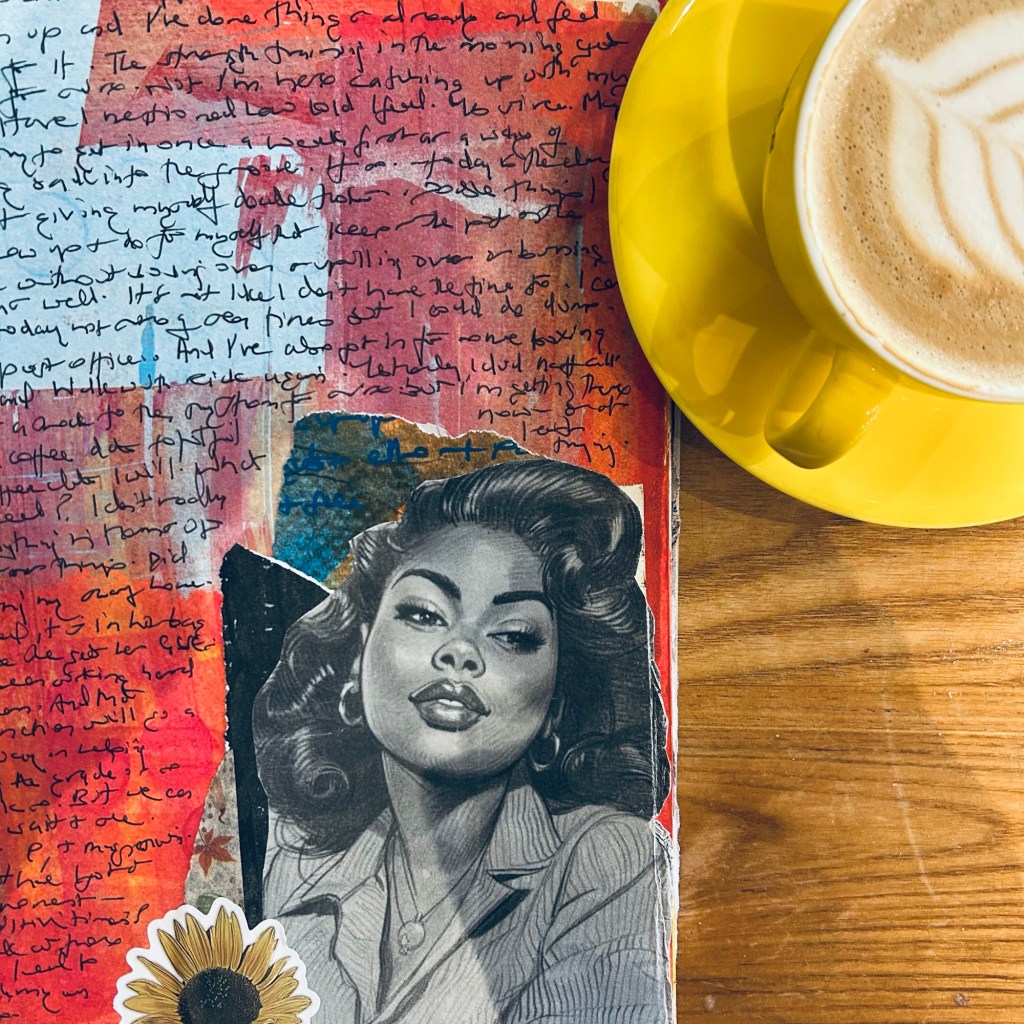Got myself a seat by the radiator and enjoyed completing my visual journal spread for the day with an extra hot oat vanilla latte.
