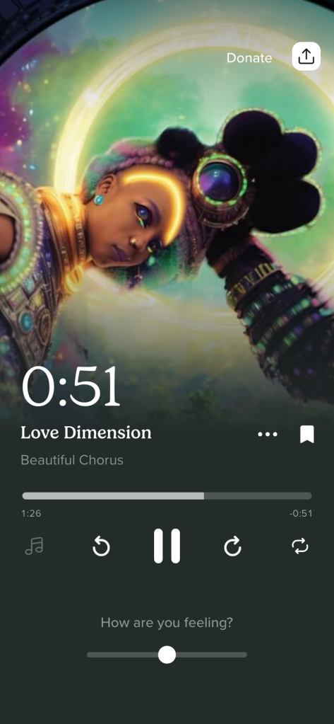 I’ve been up today since about 8am. It’s just after 10am now and I’ve had this track, Love Dimension by Beautiful Chorus on Insight Timer on repeat. It’s only 2 minutes long so I’m not going to work out the math for how many times it’s been on repeat. But let’s just say a lot.