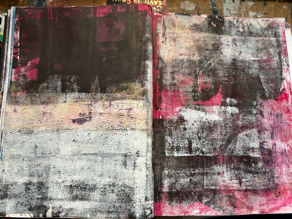 I do not feel the need or the call to create any formal work as yet or share. I’m happy exploring within my sketchbook and following where that takes me within the pages.