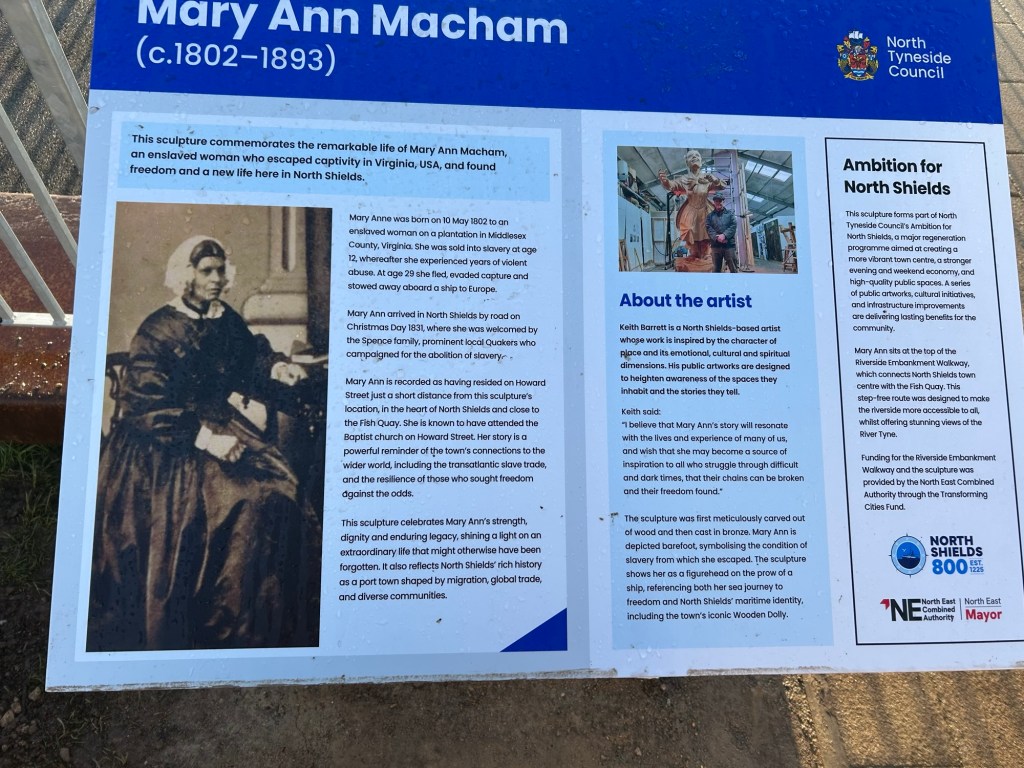 I wrote a poem about Mary Ann, her escape and travel up to the North, and with the help of the Quakers, made a life for herself through working in service and getting married and living in North Shields. This was back in 1831 when she arrived here and lived for a further 60+ years as a free woman.