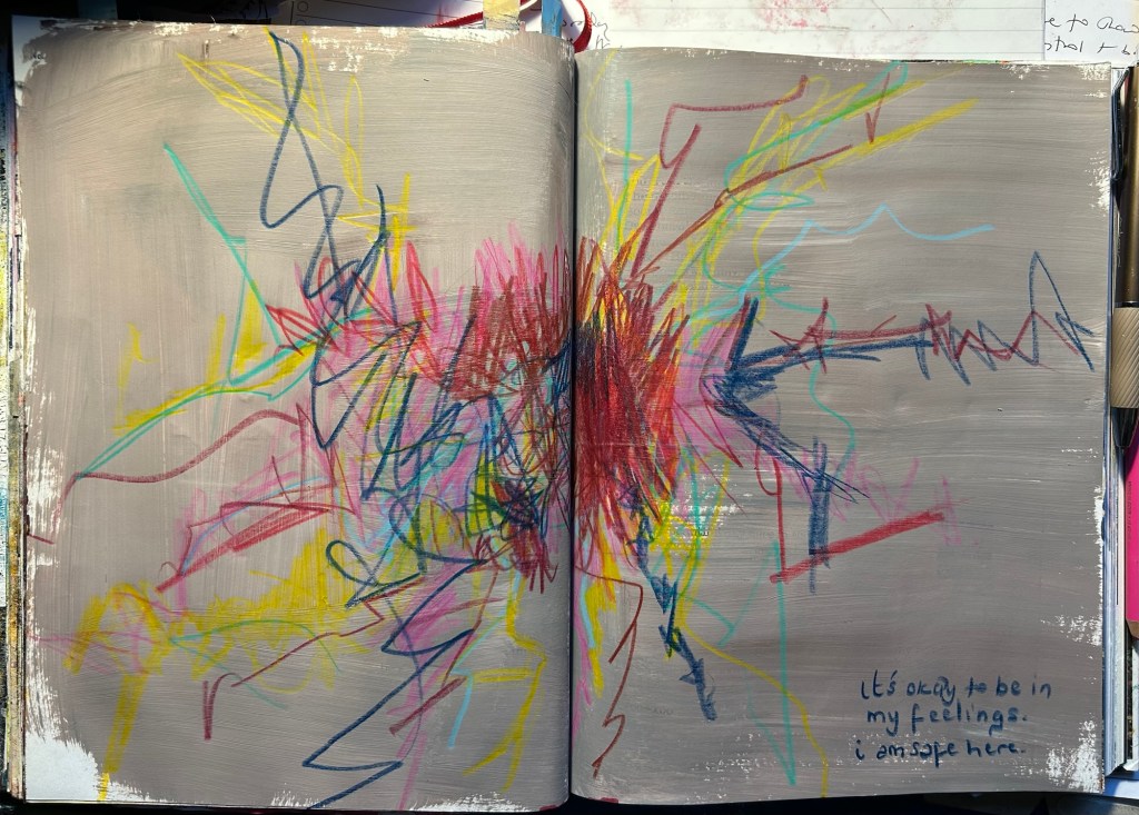What I’m learning is that I can trust myself to turn up for myself. I’m learning that my practice muscles can be strengthened. I’m learning that I love creating colour fields. It like what I create with visual journaling but different.
