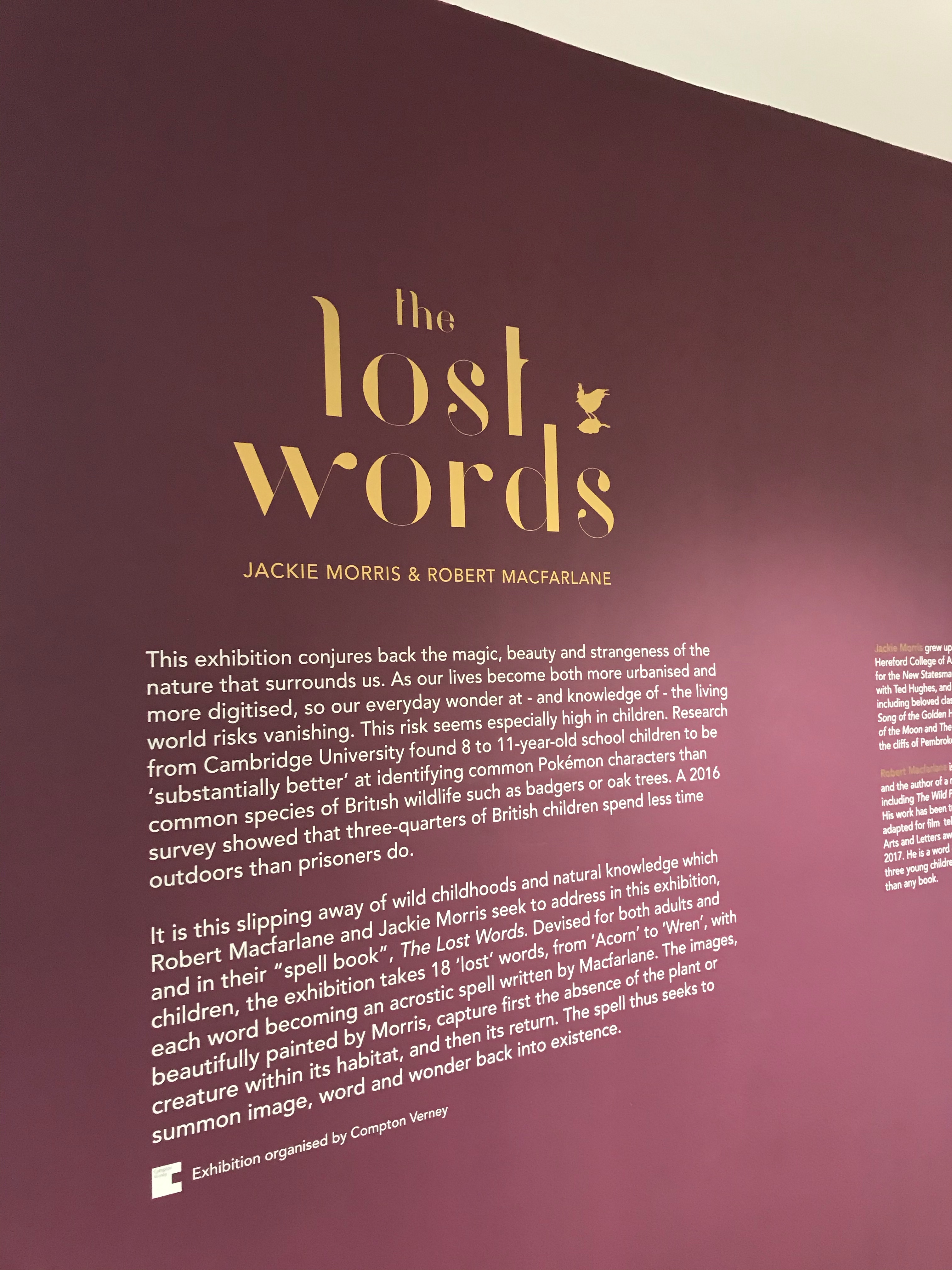 I was invited to the launch event of an exhibition bring the book Lost Words by Jackie Morris and Robert MacFarlane to life at the Sill this week. I’d seen the book and have admired the images, but I hadn’t spent much time with the text.